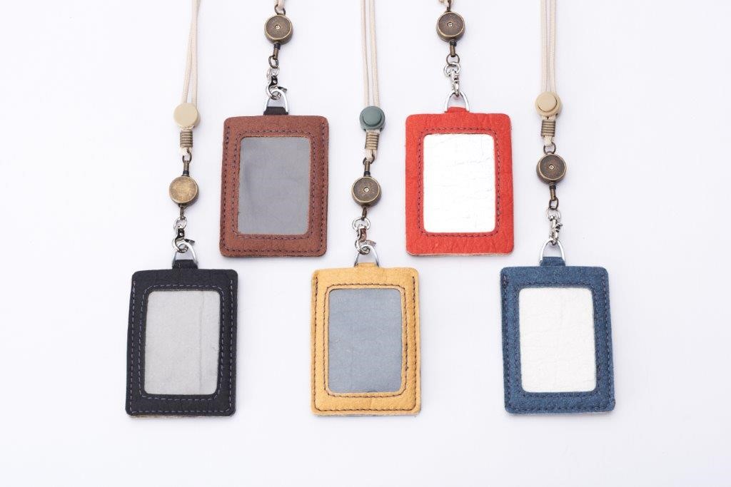 自有品牌「維根皮味」鳳梨葉皮革識別證套,是在台灣手工車縫,採用進口西班牙Ananas Anam公司的Pinatex鳳梨葉植物性皮革(Vegan leather)為原料,此乃英國皇家藝術學院Carmen博士所研發,將鳳梨葉萃取出纖維,經由蠟化(Wax) 、壓痕等處理,有類真皮風味的外觀。強調不殺生、減碳,取代動物性皮革,不僅活化農業閒置物鳳梨葉,在製程中不產生有毒物質。產品生命週期結束後,材料可分解回歸大自然,友善環境保護地球,不讓下一代受氣候變遷的迫害。
