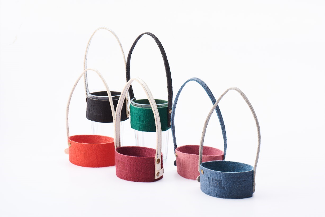 植物性皮革製成的環保飲料杯套,可分解、防燙,有多種花色可選擇,讓你的飲品更加環保,不使用塑膠袋,同時保護環境。