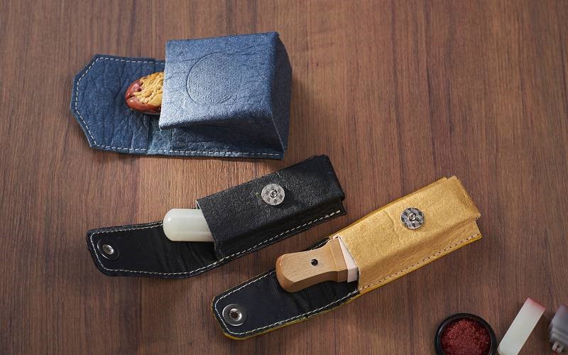 這款植物性皮革收納袋不僅可收納大小章,還能容納口紅大小的物品,非常實用。採用綠色環保的Pinatex鳳梨葉植物性皮革製作,不傷害動物且不含有毒物質。